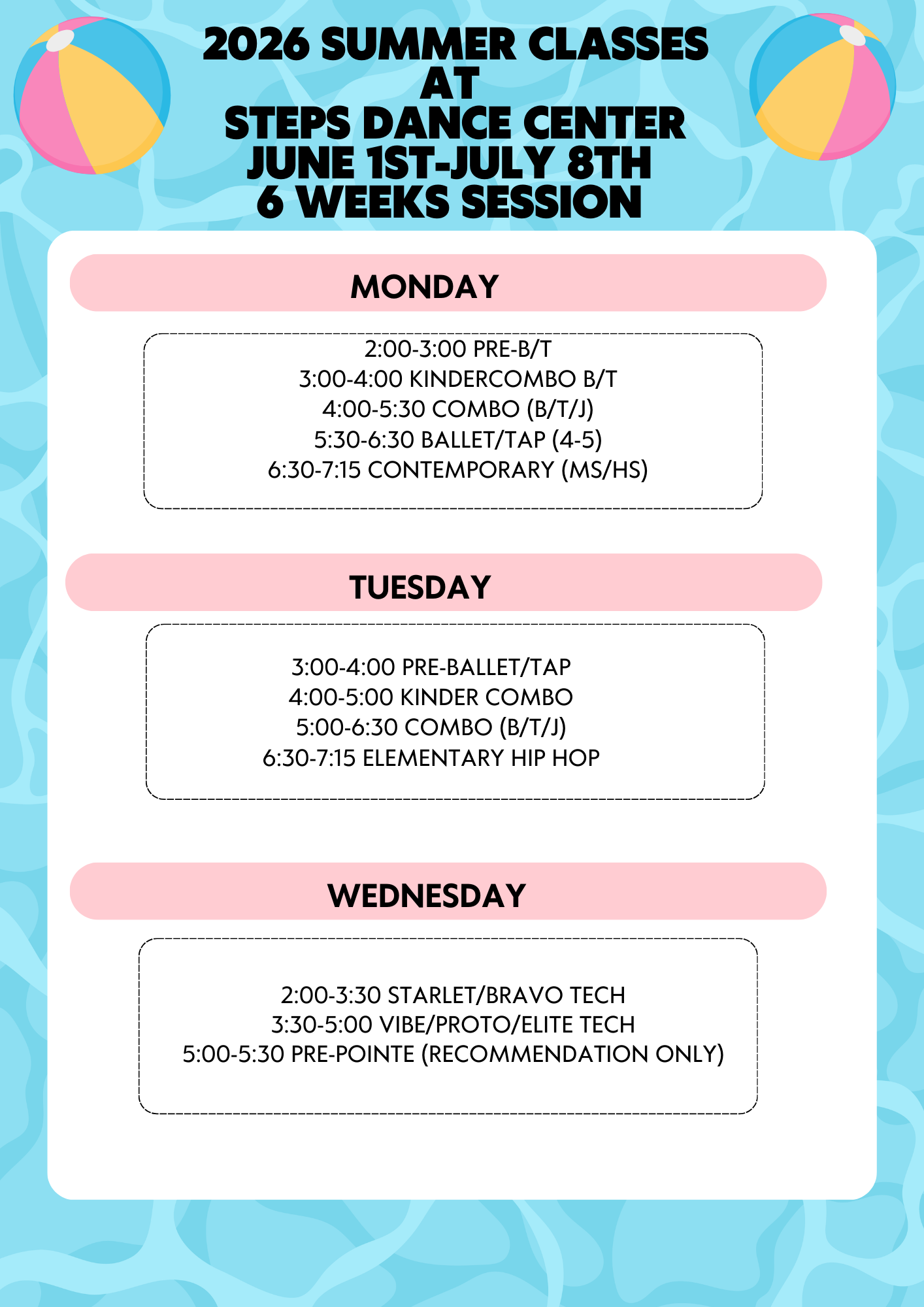 In our summer session your child will develop flexibility, fine motor skills, proper terminology, dance history and have a blast while learning !
