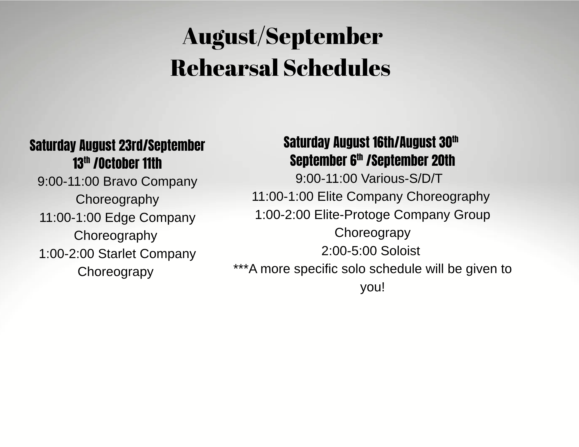 Steps Dance Center has a Dance Company for students on a higher level that want to be more involved in dance. Company dancers perform at community events and attend competitions throughout the year. Auditions for Company are held in May. Company positions are limited and students must be on the proper skill level for their age division. While being in Dance Company is a good experience, Steps curriculum classes offer the same level of fun and advancement.